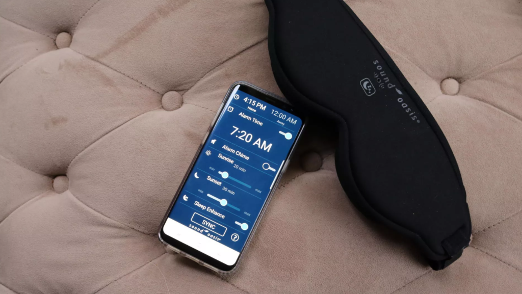 Этот прибор способствует выработке мелатонина. Производители использовали методику НАСА для синхронизации естественных часов космонавтов. Перед сном вы будете видеть солнечный закат, он постепенно темнеет. Утром вы увидите светлое голубое небо, благодаря которому будете просыпаться естественным способом, без будильника. Маску можно синхронизировать с аналогичным приложением для телефона.